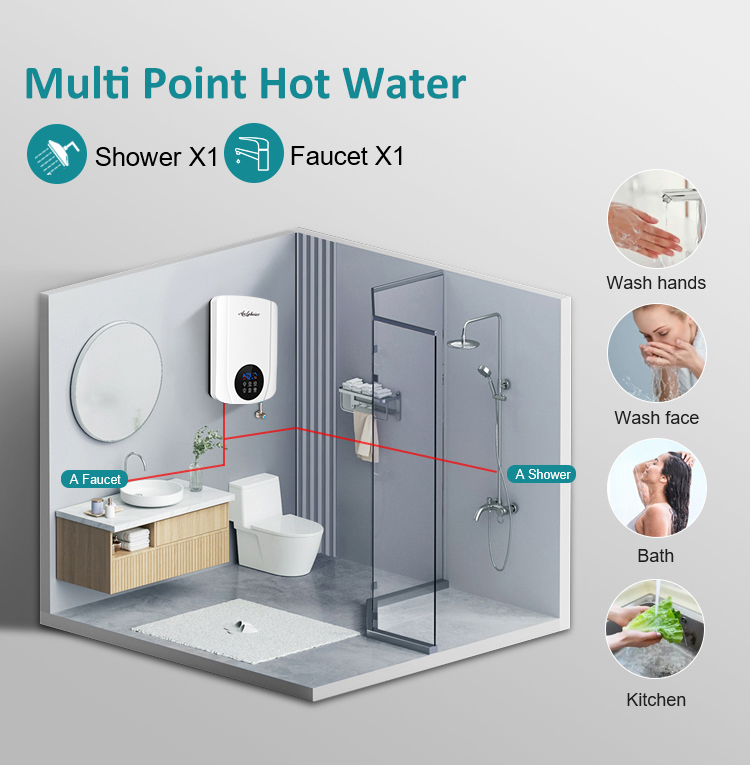 4. Compact design water heater, easy to install in the bathroom and under kitchen sink.